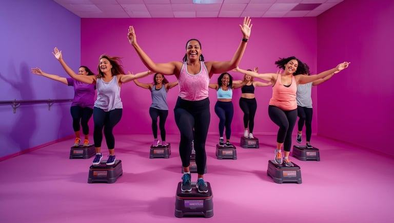 Cours chorégraphié utilisant une marche (step) comme support principal.